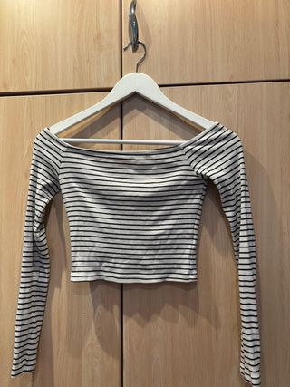 Top de rayas manga larga con hombros descubiertos