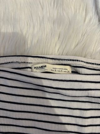 Pull&Bear Top Rayas Negras Blanco Manga Larga
