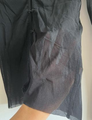 Prenda de manga larga con un diseño delicado y moderno. - Tejido de malla transparente. - Cierre frontal con botones. - Cuello redondo.