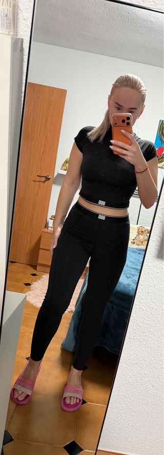 Conjunto de dos piezas de Oysho. - Crop top de manga larga. Talla L - Leggings ajustados. Talla M( sin etiqueta)