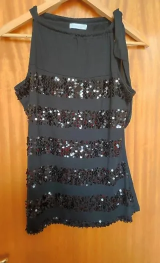 Mango Top Negro con Lentejuelas Talla S