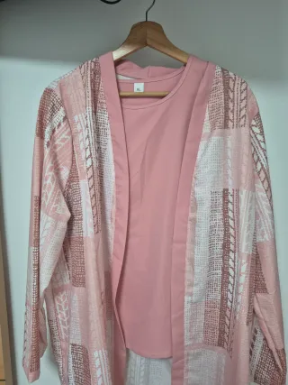 Cardigan rosa palo con encaje y textura de topos, muy femenino y favorecedor. Tejido 100% viscosa, suave, fluido y con una caída preciosa. Ideal para combinar con jeans, vestidos o pantalones de vestir — perfecto para para dar un toque romántico a cualquier look. En excelente estado, usado solo una vez. ✨ Detalles: • Color rosa palo con encaje del mismo tono • Textura de pequeños topos • Corte fluido y ligero • Manga larga • Talla única (se adapta bien de S a L) • Estilo boho chic / romántico 💖 Estado: como nuevo DESCUENTO DE hasta un 40% eligiendo 5 de mis artículos. APROVECHA y paga solo un envío.📦💰