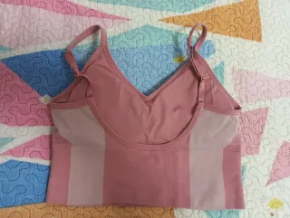 Top de tirantes en tono palo rosa. - Diseño de canalé en la banda inferior. - Tirantes ajustables.