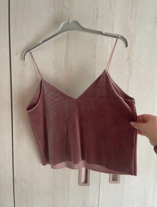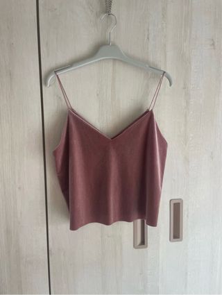 Top de tirantes fino con un bonito color rosa palo. - Tejido de terciopelo suave. - Escote en pico.