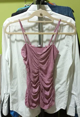 Top Zara Lazos Dobles Rosa Palo Talla M