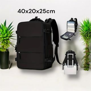Mochila de cabina 40×20×25 cm (bajo asiento Ryanair, válida Vueling). Nueva, resistente y súper organizada. ✅ Bolsillo antirrobo trasero (móvil/pasaporte). ✅ Apertura 180º tipo maleta + separadores. ✅ Bolsillo/compartimento impermeable. ✅ Correas de compresión y cinta para trolley. ✅ Tirantes acolchados y cómodos. 🎨 Colores disponibles (exactos): negra, rosa palo, rosa, azul grisáceo, marrón topo, turquesa claro, malva. ✅ Es de las buenas, gruesitas, con cuerpo, resistentes. 🎁 Ideal para regalar-te👑 40x20x25, mochila cabina, bajo asiento, Ryanair, Vueling, antirrobo, apertura 180, impermeable.