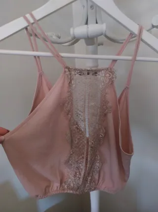 Top lencero de tirantes finos en color rosa. - Tejido satinado. - Escote en pico. Si te interesan más productos de mi perfil, podemos negociar pack 😉