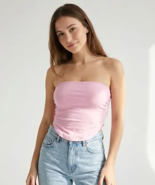 Top Bershka Rosa Palo Sin Tirantes Talla S