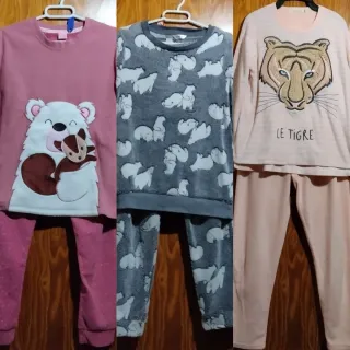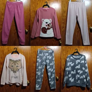 Lote de 3 pijamas de las marcas Dunnes Stores y Woman Secret. Los 3 para talla 36/38 ,los 3 están muy nuevos ,rosa pálido con tigre ,gris con osos blancos,rosa palo con oso,los 3x30€ Sueltos 8€ cada uno - Pantalón rosa palo con topos. - Pantalón rosa liso. - Pantalón gris con osos blanco