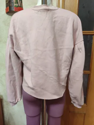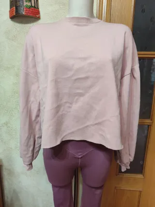 Sudadera corta de manga larga en tono rosa palo Su diseño es moderno y versátil. Con pelito por dentro - Corte crop top. - Tejido suave y cómodo.