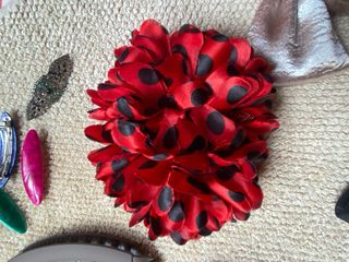 Se venden accesorios para el pelo: Dos coleteros de color marrón y dos de color negro. Pinza negra tipo lazo de gasa Pinza rosa palo tipo lazo Pinza topos roja y negra Pasadores fucsia, verde, azul, rojo, pedrería