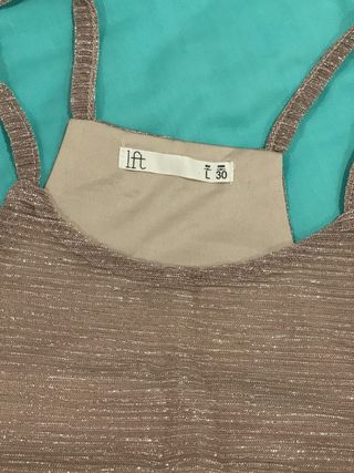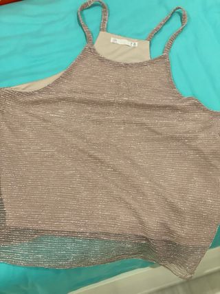 Top color rosa palo con tela de brillo. Talla M de Lefties. En perfecto estado.