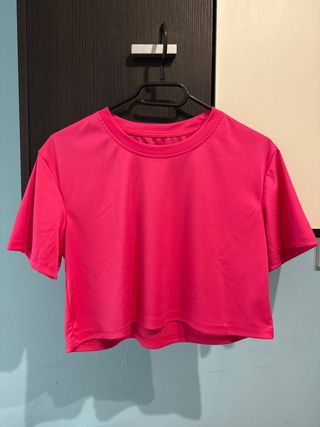 Camiseta/top de canalé rosa. Es de Bershka, talla M.