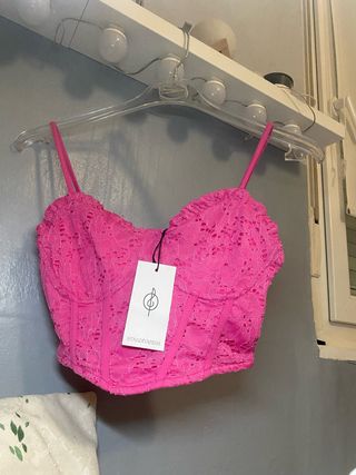 Bonito top de Stradivarius con un diseño de encaje muy especial. - Color rosa vibrante. - Tejido con textura de encaje. - Tirantes finos.