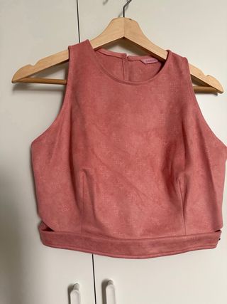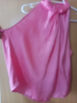 Top corto de tirantes en color rosa. Usado solo una vez. - Tejido satinado. - Tirantes ajustables. - Elástico con fruncido en la espalda