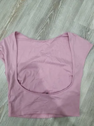 Top de color rosa con espalda al aire - Tejido suave y cómodo. - Diseño de manga corta. - Corte moderno.
