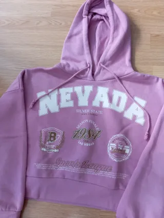 *SÓLO ENTREGA EN MANO *SÓLO PAGO EN EFECTIVO *ENTREGO METRO AVENIDA DE LA ILUSTRACIÓN, LÍNEA 7 POR 1€ Sudadera de mujer en rosa modelo crop top con estampado Nevada. De la talla M de Lefties en perfecto estado