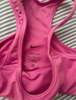 Top deportivo de la marca Nike en color rosa. Diseño cómodo y moderno. Talla M. Usado muy poco - Tirantes cruzados en la espalda. - Logo de Nike en contraste en el pecho.