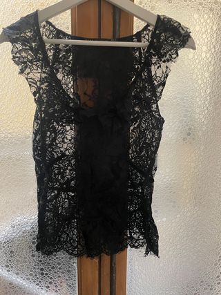 Precioso y sexy top lencero, negro de Zara, ideal para cualquier ocasión. Es de talla S (equivalente a 36 u 8). Talla bastante completa - Tiene un delicado encaje en el escote y el bajo. - Nuevo, sin estrenar