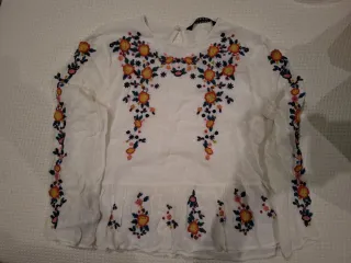 Blusa blanca Zara bordada flores