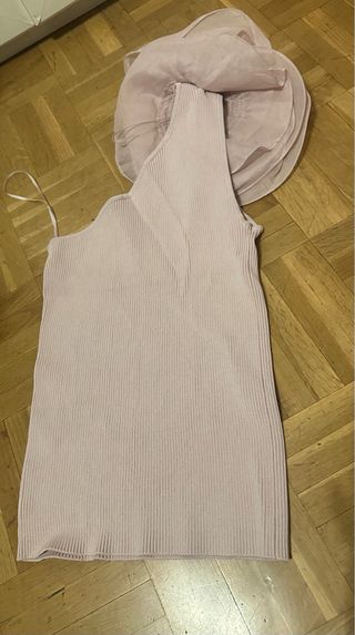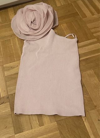 Top de Zara con un diseño original de una sola manga y detalle de flor. - Manga asimétrica. - Adorno de flor en el hombro. - Tejido acanalado.