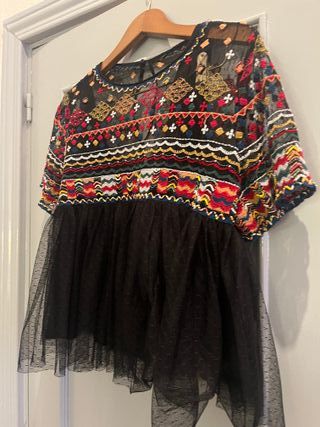 Top fiesta Zara manga larga pedrería Talla M