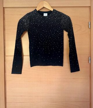 Top Zara XS negro con pedrería