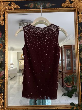 Top burdeos con pedrería