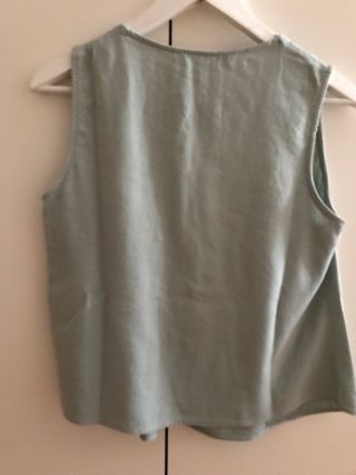 Top de lino en color verde agua. Sin mangas y cierre con cordón con pedrería. Marca Zara. Talla M. En perfecto estado.