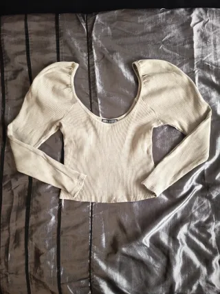 Top de Zara con un diseño moderno y favorecedor. Su tejido acanalado le da un toque especial. - Manga larga abullonada. - Escote pronunciado. - Corte ajustado.