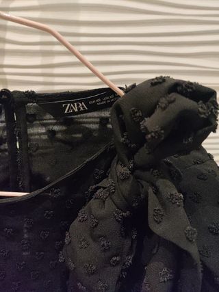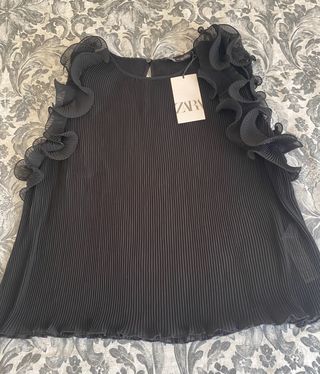 Elegante top de Zara en color negro. Diseño moderno y favorecedor. - Cuello camisero. - Cierre de botones. - Detalle de drapeado.
