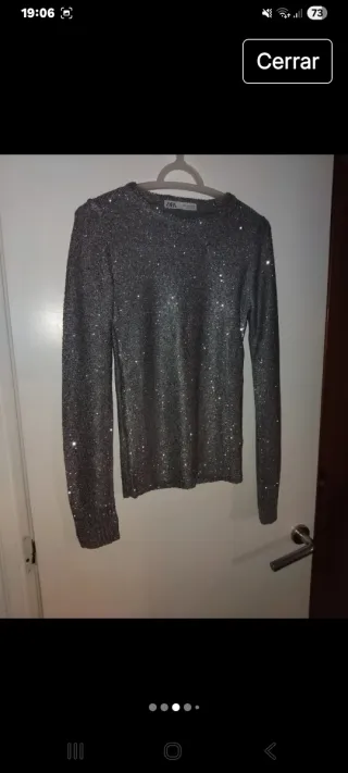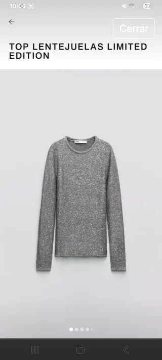 Top de Zara con lentejuelas, perfecto para un toque brillante. - Diseño de manga larga. - Acabado metalizado.