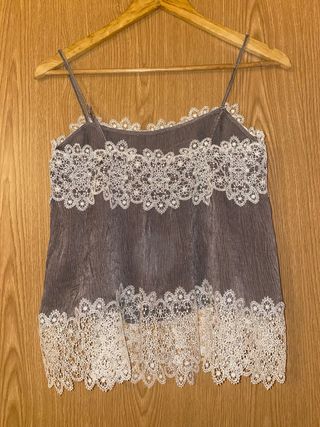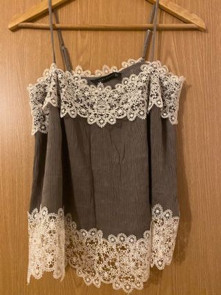 Bonito top de Zara con detalles de encaje. - Diseño con tirantes finos. - Adorno de encaje en el escote. - Borde inferior con encaje.