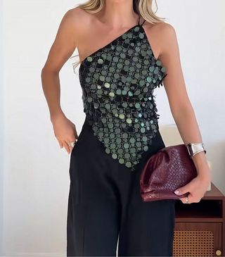 Top verde lentejuelas zara