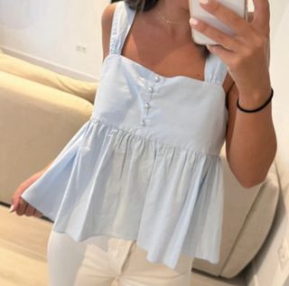 Camisa o top corto de Zara que se lleva haciéndose un nudo debajo del pecho. Está sin estrenar.