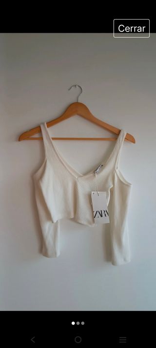 Top punto zara, en talla S, escote en pico. 2 o 3 usos.