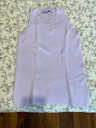 Preciosa camiseta de punto lila de Zara, talla M. Está en muy buen estado, apenas se ha usado. - Sin mangas. - Corte recto