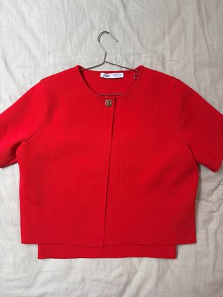 📍SALAMANCA Conjunto de 2 piezas: top corto en color rojo (Talla L) y balzer corto color rojo (Talla XL). - Diseño de manga corta. - Cierre frontal con un botón. - Cuello redondo. 📦📦 ENTREGA EN ESTACIÓN DE TREN SALAMANCA - SALAMANCA ALAMEDILLA