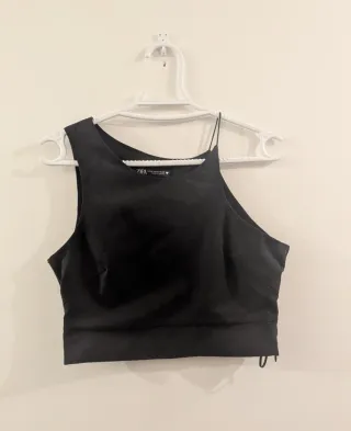 Croptop Zara mujer negro asimétrico