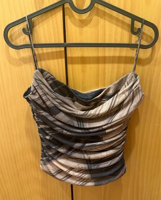 Top con un diseño drapeado y un estampado llamativo. - Tirantes finos. - Tejido ligero y con textura. - Corte ajustado.