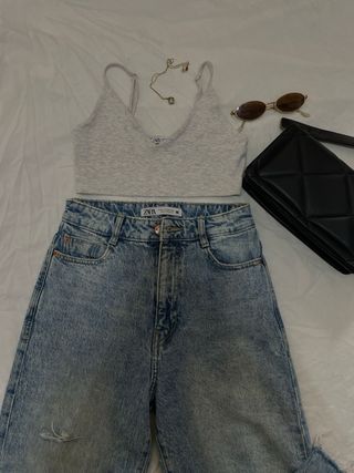 Top de Zara en color gris, talla M. - Diseño moderno y versátil. - Tejido suave y cómodo.