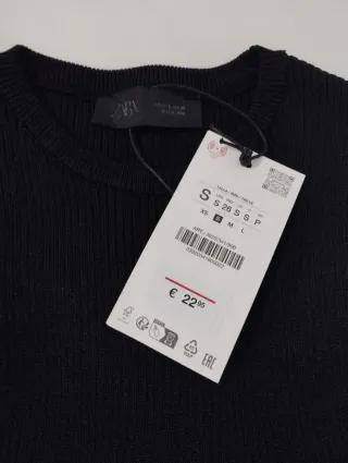 Elegante top de Zara de punto con un diseño moderno y sofisticado. - Mangas abullonadas plumeti de tul - Escote cuadrado. - Corte cropped.