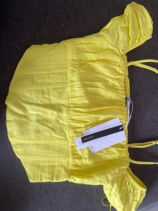 Precioso top - Tejido ligero y transpirable. - Diseño fruncido. - Mangas abullonadas. - Detalle de tiras.