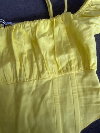 Top corto de Pull and Bear en color amarillo con detalles. - Diseño de tirantes finos. - Ribete blanco en cuello y sisas. - Pequeño bordado frontal.