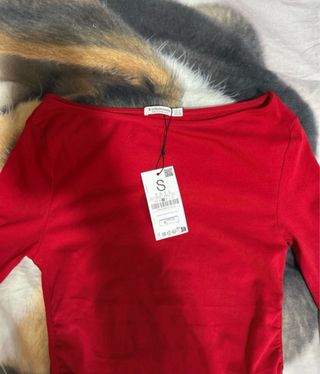 Top Stradivarius Rojo Manga Larga