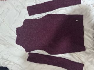Top de manga larga con un acabado brillante. - Color morado con destellos. - Cuello redondo.