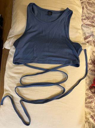 Top de tejido acanalado con un diseño moderno y versátil. - Escote redondo. - Tirantes finos. - Cierre con tiras para anudar.