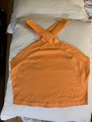 Top de tirantes estilo halter, con un diseño acanalado que aporta textura. - Tejido elástico y cómodo. - Tirantes para atar al cuello.