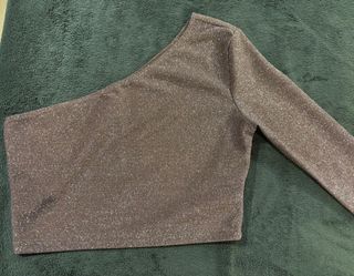 Top brillante con un diseño asimétrico y manga larga. - Tejido con acabado brillante. - Corte moderno. - Ideal para eventos o salidas.