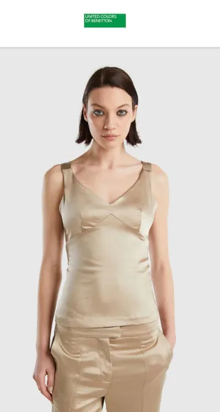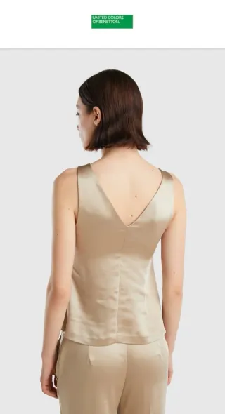 Elegante top de satén en tono dorado. Un básico sofisticado para cualquier ocasión, ideal para fiestas y Nochevieja - Diseño con escote en V. - Tirantes finos. - Tejido satinado con caída. - tiene forro, sin estrenar Otros: zara, mango, hm, sfera